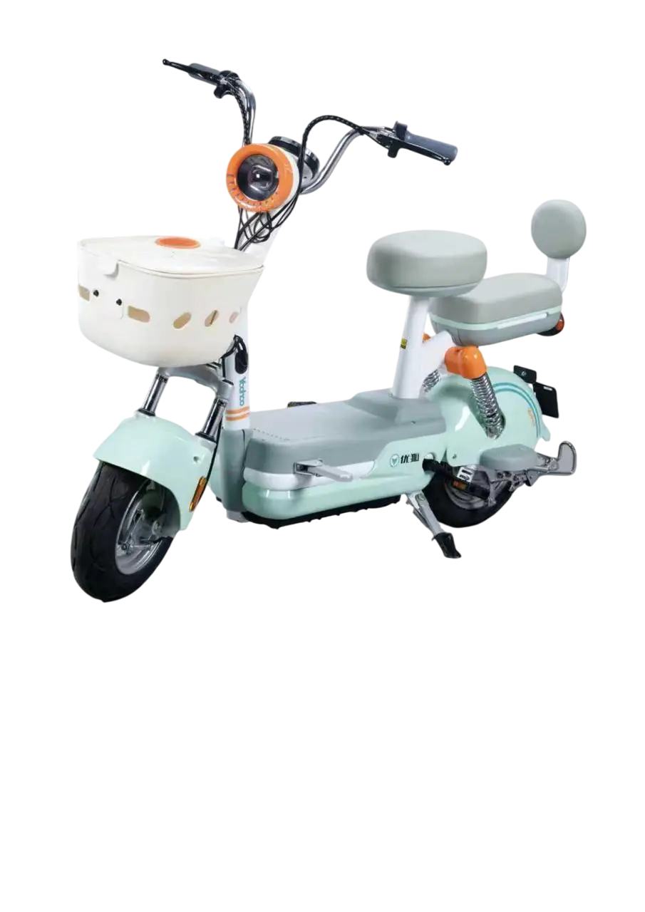 Cuenta con frenos de tambor delanteros y traseros, luces LED, estructura liviana de solo 43.5 kg y capacidad de carga de 140 kg. Es ideal para trayectos urbanos cortos, estudiantes y usuarios que buscan eficiencia con bajo consumo energético. Disponible en varios colores.